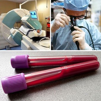 - Mágneses rezonancia képalkotás (MRI) vizsgálatok lehetnek megfelelőek, ha pontos adatokra van szükség a daganat helyeiről. Az MRI technika mágnesességet, rádióhullámokat és számítógépet használ a testszerkezetek képeinek előállításához. A CT szkenneléshez hasonlóan a páciens egy mozgatható ágyra van helyezve, amely be van helyezve az MRI lapolvasóba. Nincsenek ismert MRI-szkennelés mellékhatásai, és nincs sugárzásnak kitéve. Az MRI által készített kép és felbontás meglehetősen részletes, és képes észlelni a testben lévő struktúrák apró változásait. A szívritmus-szabályozó, a fém implantátum, a mesterséges szívbillentyű és az egyéb műtéttel beültetett struktúrák nem szkennelhetők ki MRI-vel, mert fennáll annak a veszélye, hogy a mágnes mozgatja ezeket a szerkezeti részeket.