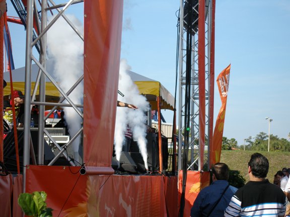Egyéni CO2-függönyrendszert biztosítottunk, amelyet a Phil ips World Tour Show-n, a Consumer Electronics Show 2006 Las Vegas-ban (a fenti gombon) láttunk.