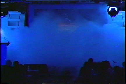 Feltölthetünk egy színpadat füstöléssel és felgyorsíthatjuk a közönségbe.