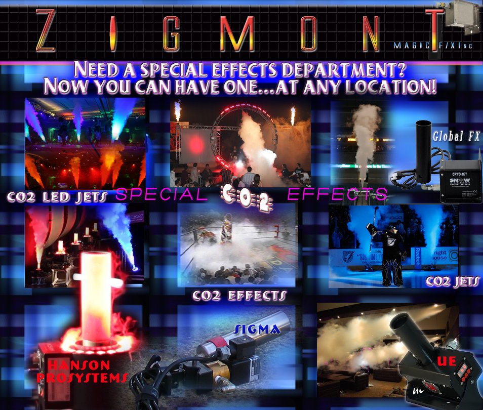 A Zigmont Magic FX a legmodernebb krio-sugárhajtású berendezésekkel és kriogén hatású rendszerekkel rendelkezik, amelyek beépített DMX-vel rendelkeznek, és amelyek tüzet vagy jeget ábrázolnak. Színes sütés az egész színpad mosásával. Plus immár 180% -os animatronikus mozgással a CO2-krio-fúvókákhoz. A legjobb kriogén rendszerek piacán dolgozik, ami nem kényszeríti a Cryo FX eszköztárat arra, hogy a munkát pontosan elvégezze. Miközben tehetünk krio hatásokat, nem vagyunk olyan online áruházak, amelyek krio-fúvókat árulnak el, többnyire béreltek, hogy krio hatásokat biztosítsunk élő eseményekhez. Amikor a Cryo FX cue-t hívják és helyesnek kell lennie, akkor a Effectspecialist.com®-on beszélnek.