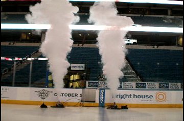 A Magic F / X speciális effektusokat tartalmaz a propánlángok számára a 2004-2005-ös flamand flames összes hazai játékához. Az NBA – NBDL liga kosárlabda csapata, a Germain Arena Fort Meyers Florida-ban. Tekintse meg a Cryo-t a háttérben a csapat intro-nál.