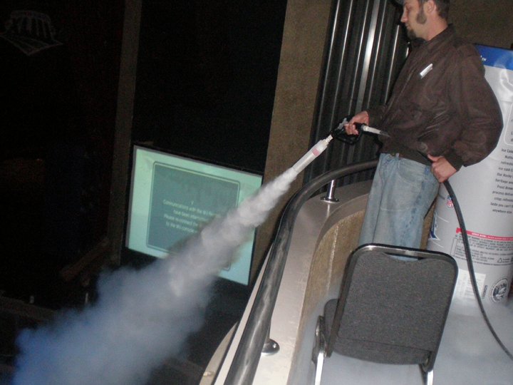 A füst / ködszerű hatások, amelyek gyorsan elpárolognak, valójában gőzölgő folyadékok, amelyek Cryogenics technológiát alkalmaznak, amely szén-dioxid kémiai képletet alkalmaz a folyékony CO2 felhasználásával.