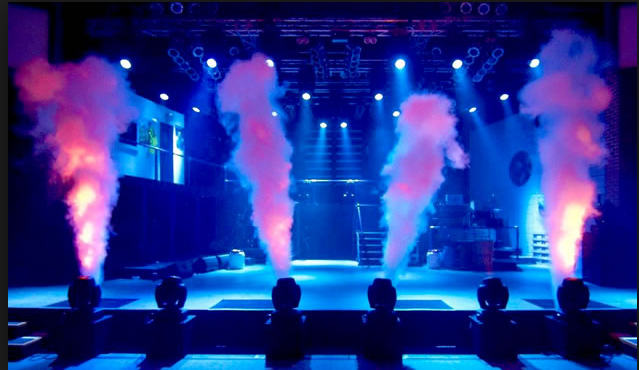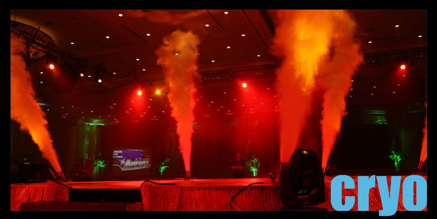 Képesek vagyunk speciális hatású, 40 láb hosszú, vagy CO2-fúvókák fúvókáinak készítésére, amelyek egy színpadot fedeznek fel. Lehet, hogy egy krio vízesés hatása egy felsõ rács, hogy utazik le a padlóra, amely lehet minden helyet egy ködfüggönyökkel alakíthat át, amelyen át lehet sétálni.